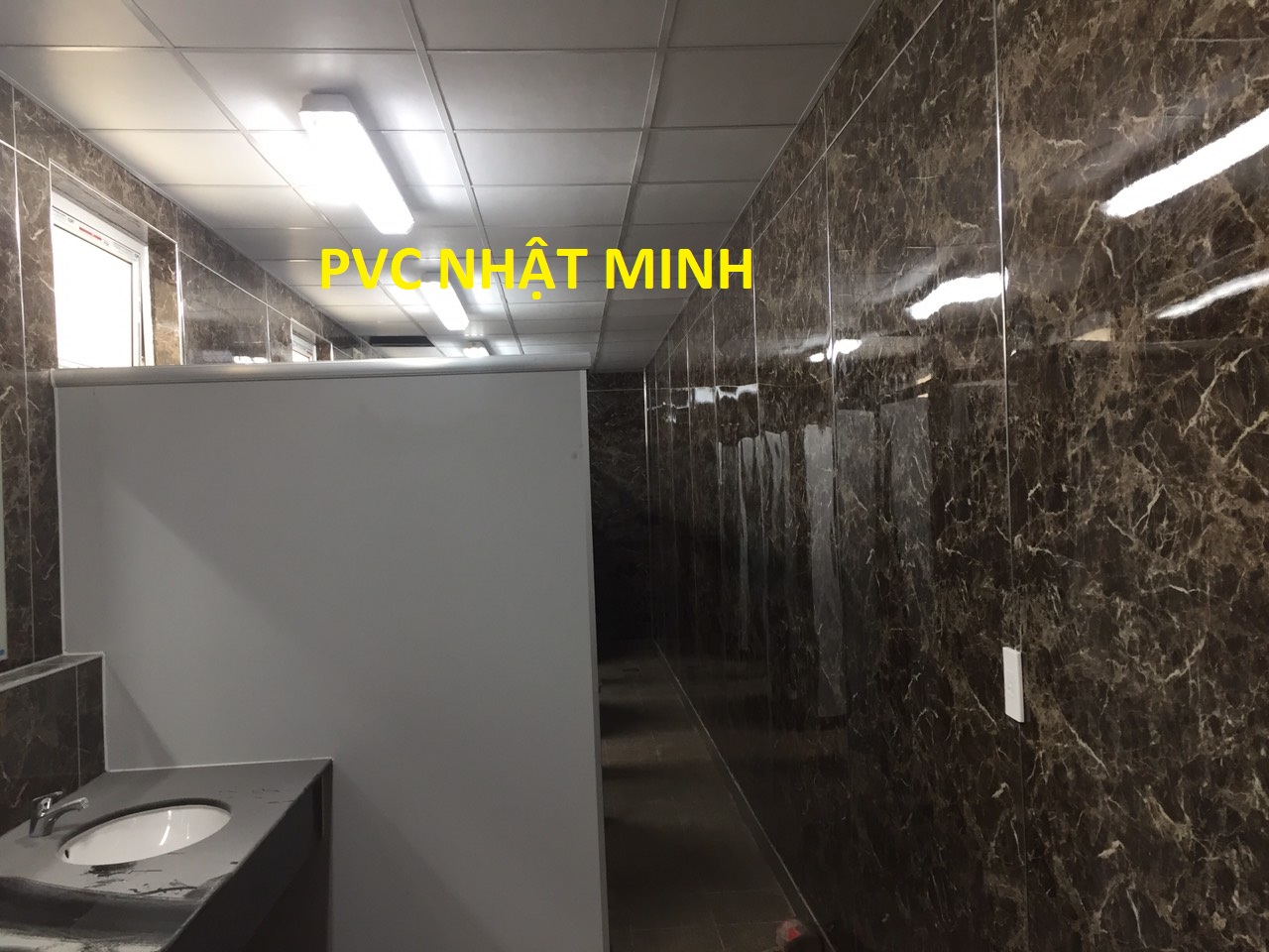Thi công ốp tấm pvc vân đá toilet của nhà máy ở kcn Visp Vinh