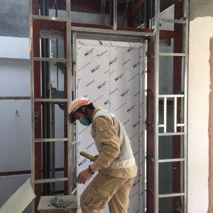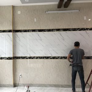 Thi công ốp PVC vân đá vách thang máy