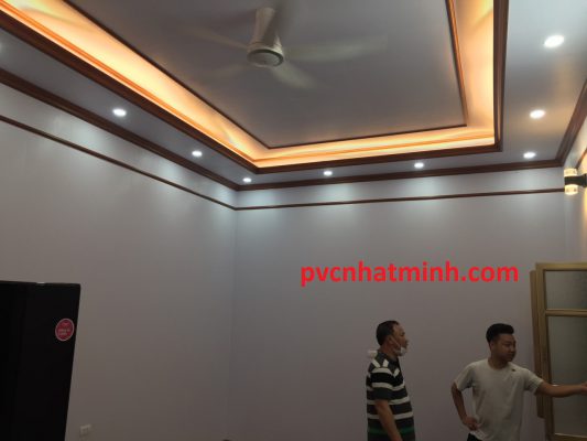 Thi công trần & tường Tấm PVC vân đá, Tấm Nnao vân gỗ