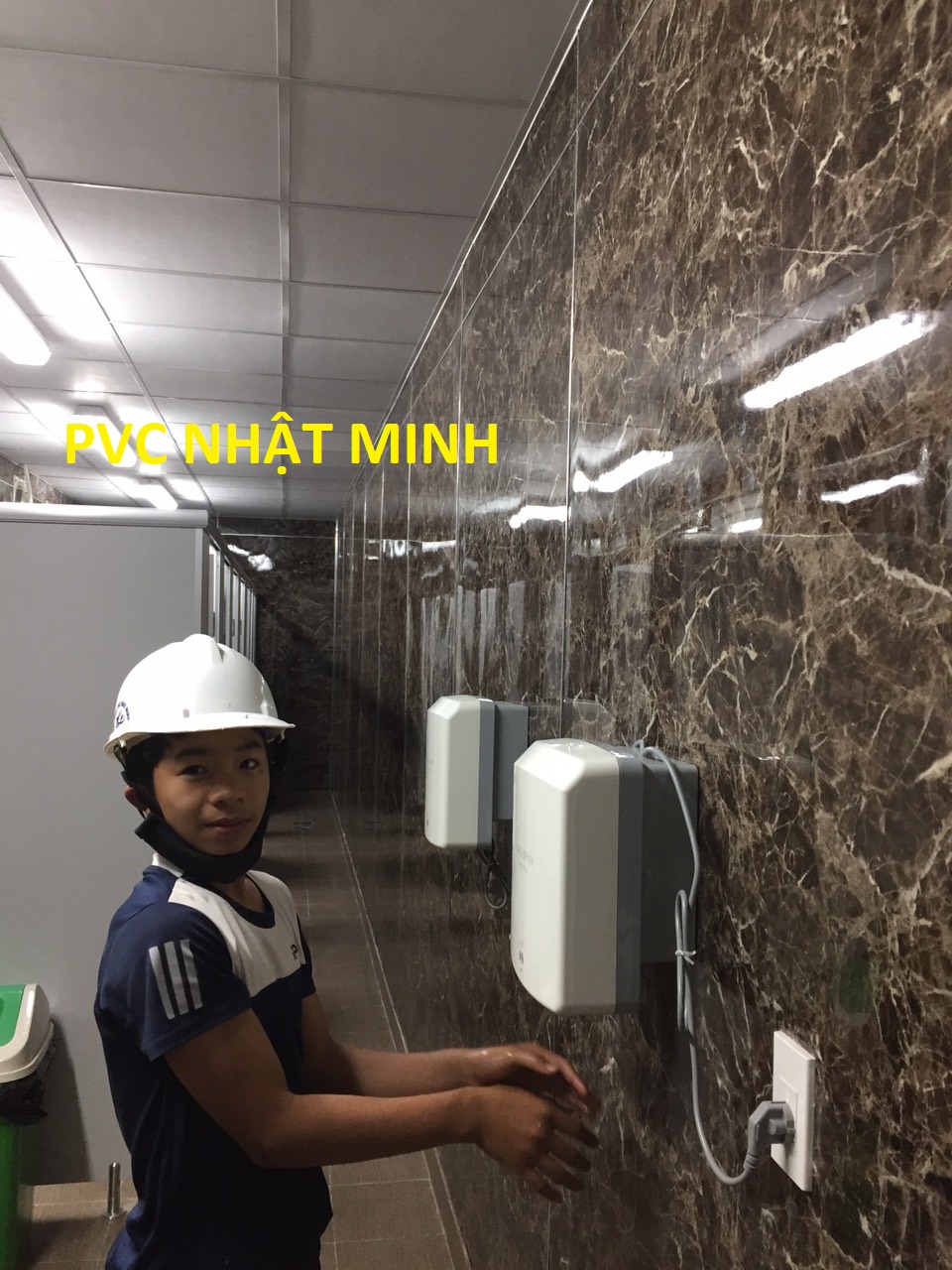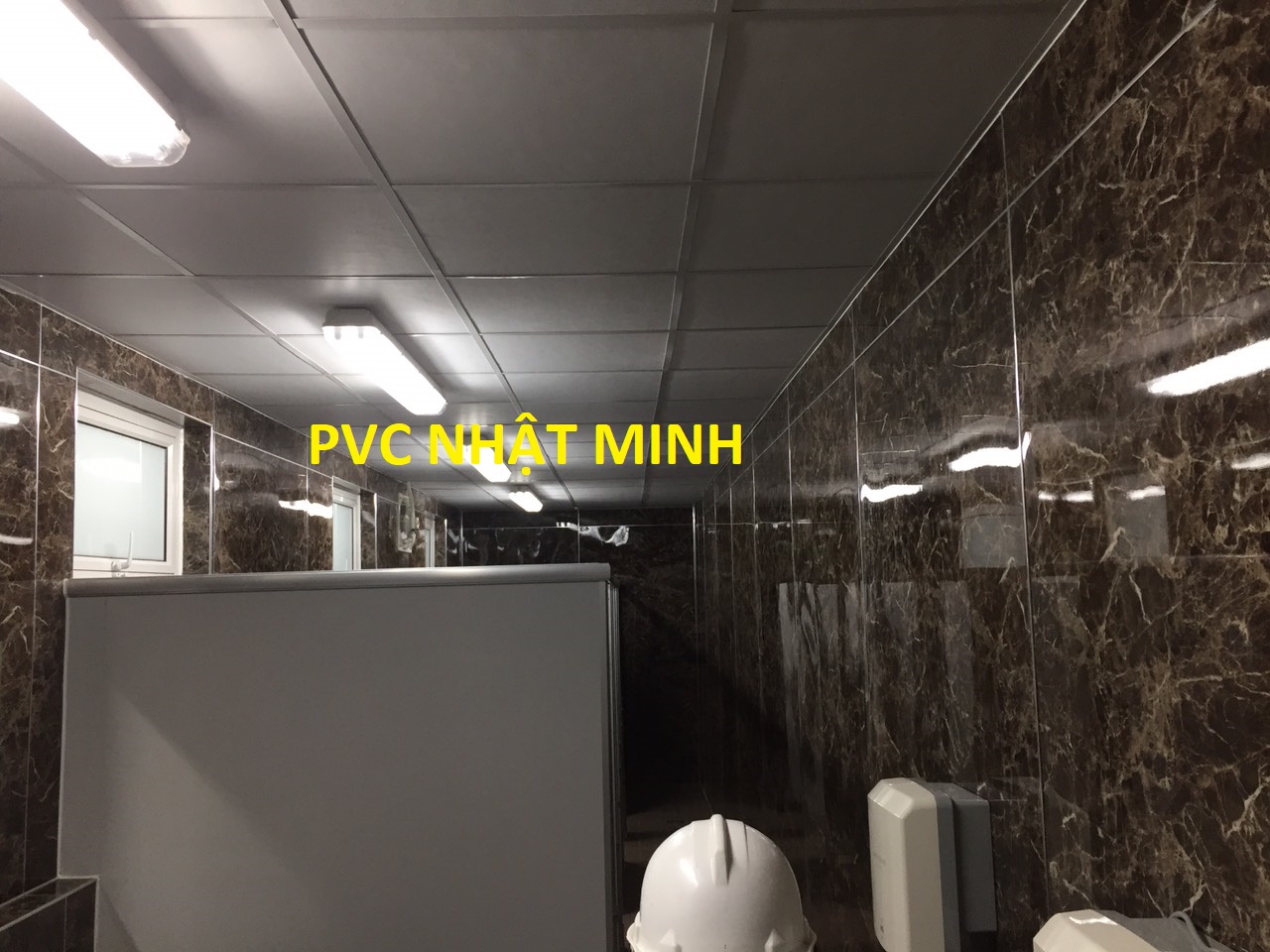 Thi công ốp tấm pvc vân đá toilet của nhà máy ở kcn Visp Vinh
